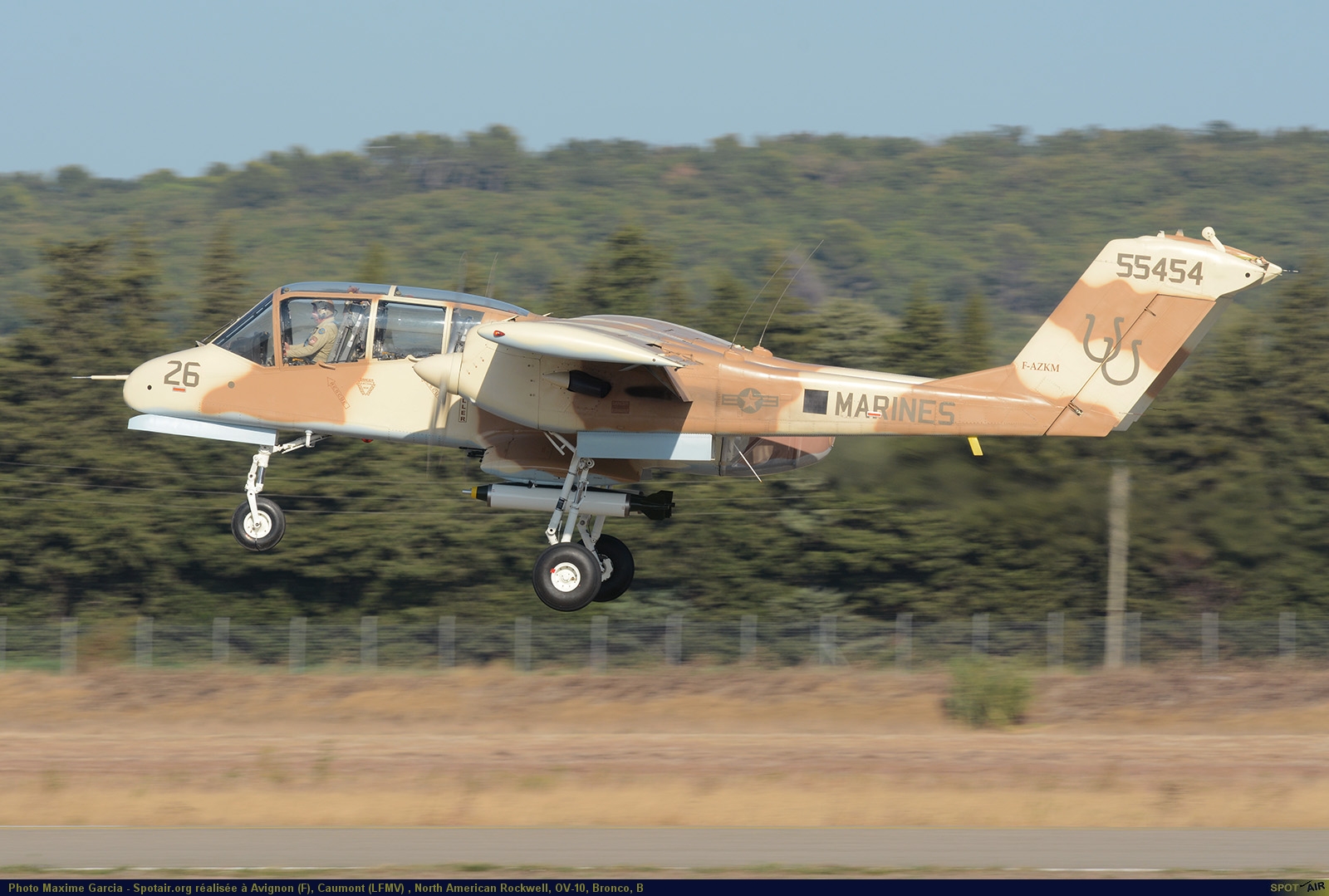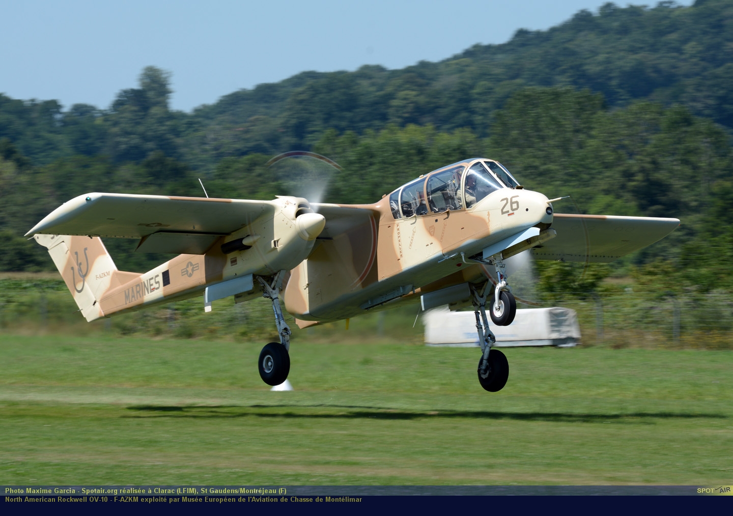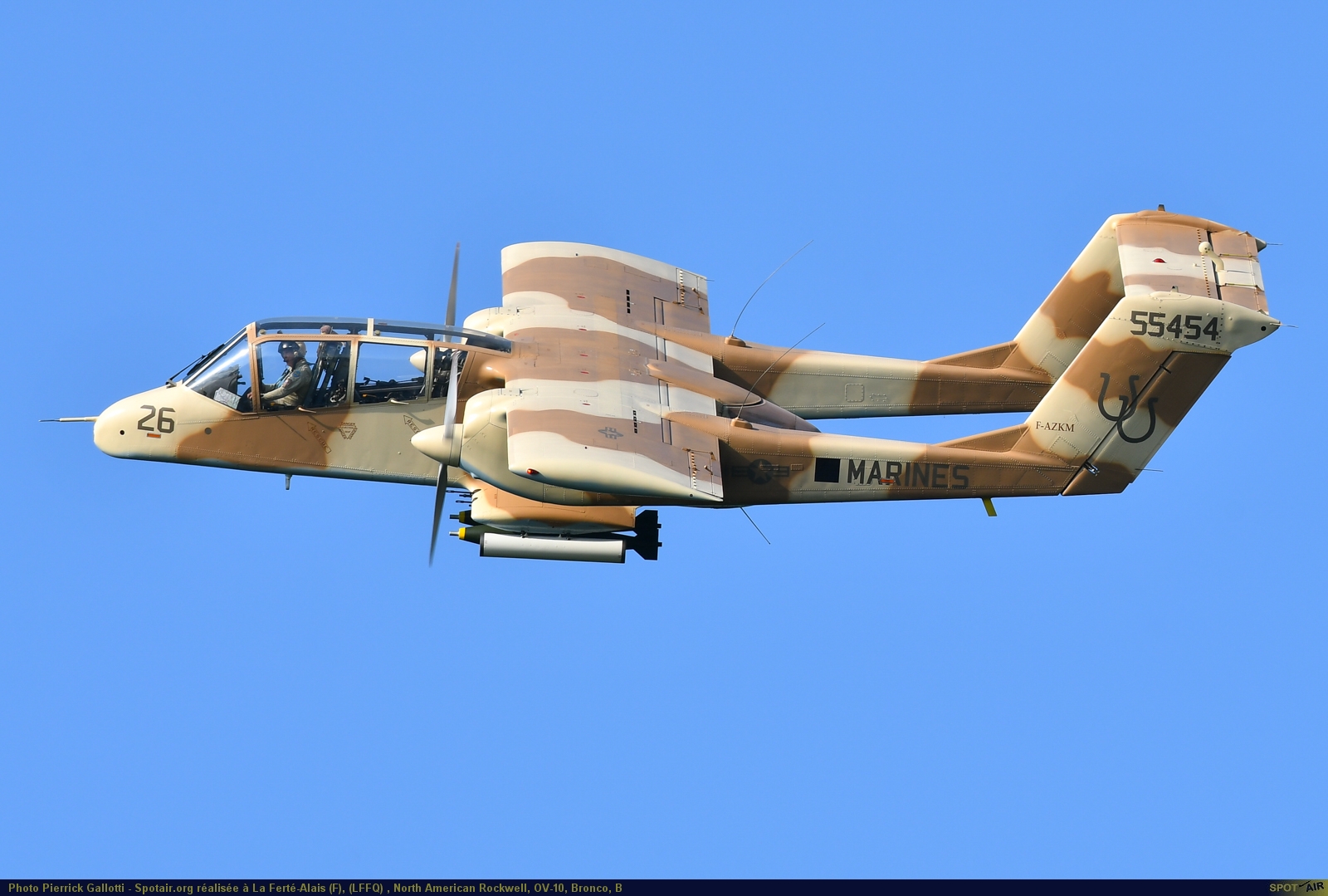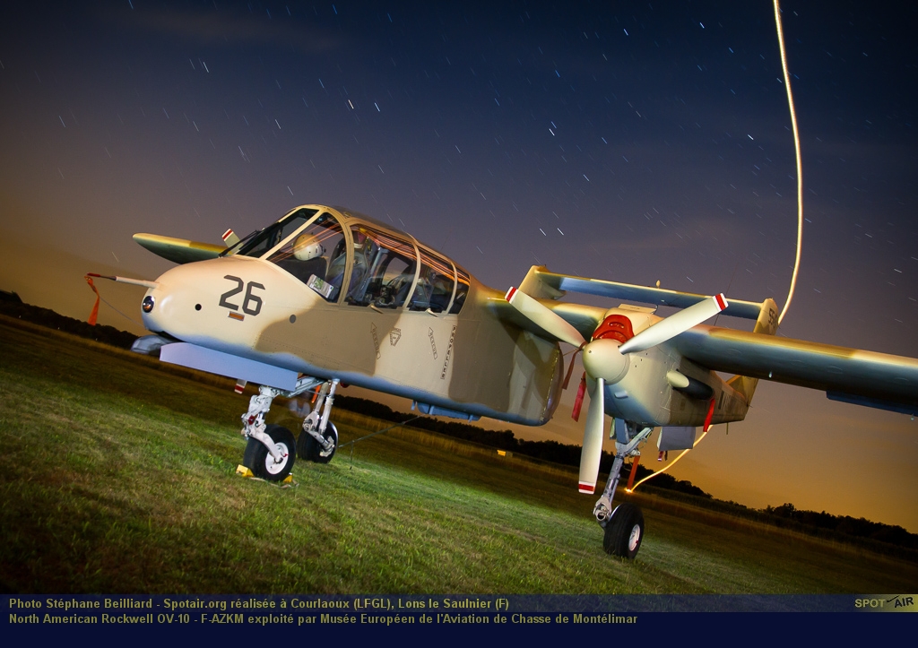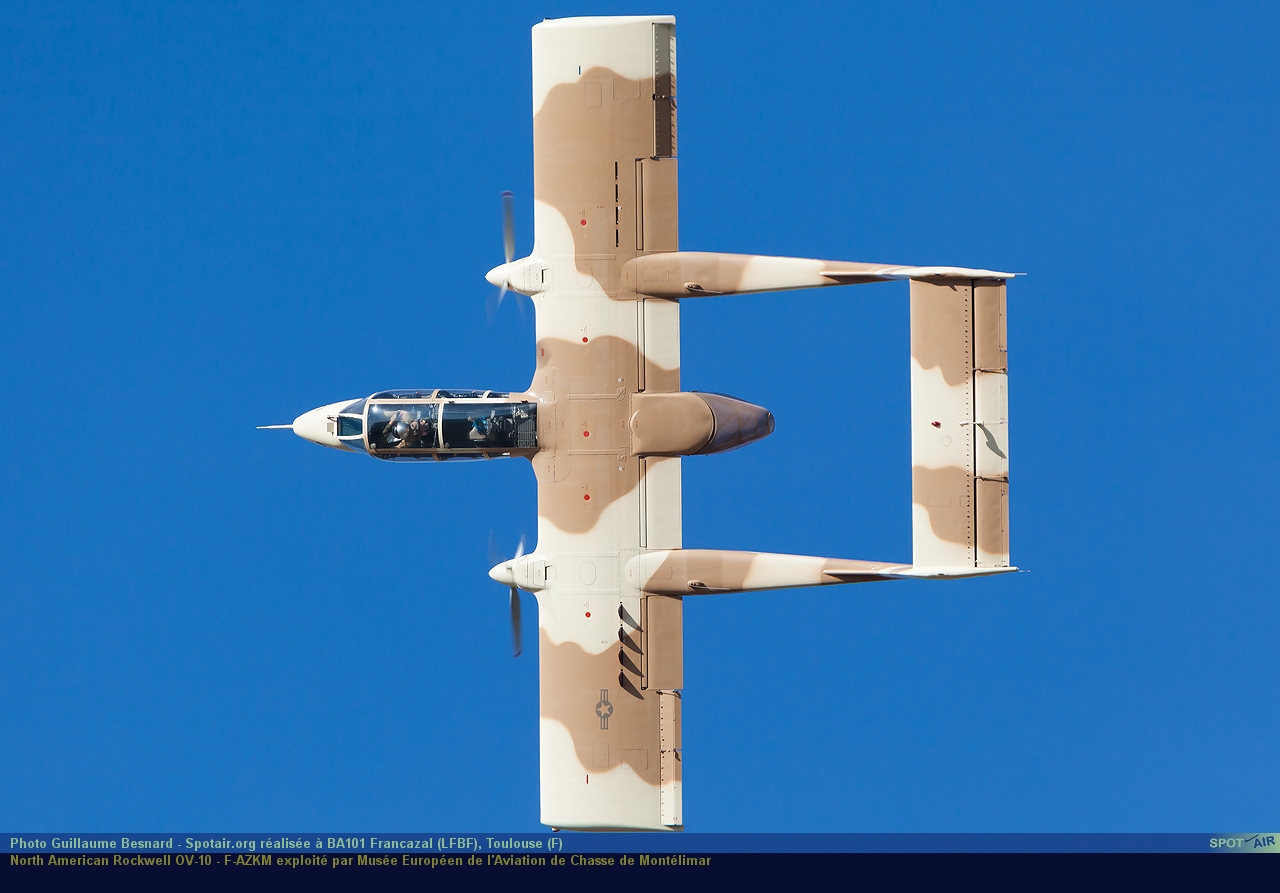 L’OV-10B de Montélimar a été transformé il y quelques années en OV 10A aux couleurs des Marines. Dérivé de la version américaine, il en diffère par la suppression des pontons d’armement, le remplacement du cône arrière par un cône vitré, et par l’aménagement de l’avion en remorqueur cibles. L’équipage se compose d’un pilote et du biroutier dans la queue de l’avion, dos à la marche. Les OV-10B(Z) avaient un réacteur supplémentaire GE J85 de 1 340 kg de poussée sur le dos, rapidement démonté en raison de difficultés.